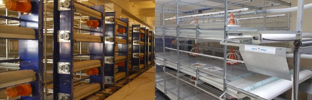 Во всех видах клеточного оборудования применяется ленточная система помётоудаления, позволяющая оперативно удалять помёт и обеспечивать санитарные условия в курятнике.